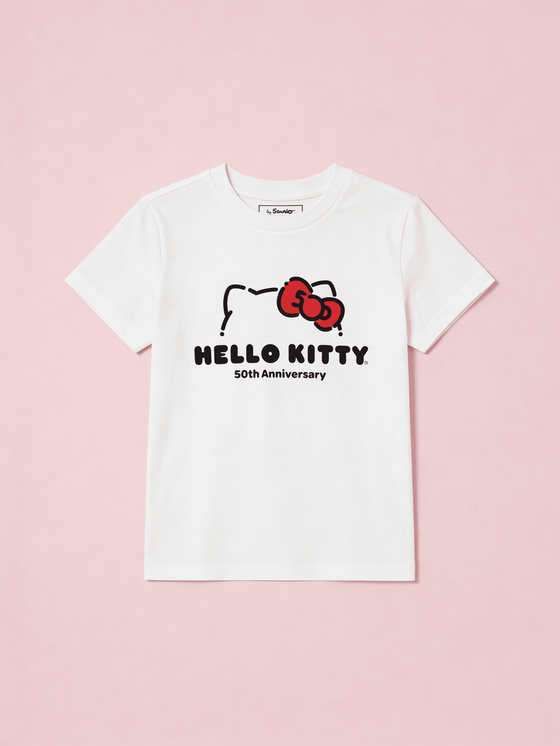 Limitovaná edice pro opravdové fanoušky! Bílé unisex tričko k 50. výročí Hello Kitty oslavuje ikonický design tím nejstylovějším způsobem. Minimalistický potisk s mašličkou a siluetou Hello Kitty v kombinaci s nápisem „50th Anniversary“ dává jasně najevo, že styl a nostalgie jdou ruku v ruce. Perfektní k džínám, sukni i na vrstvení.